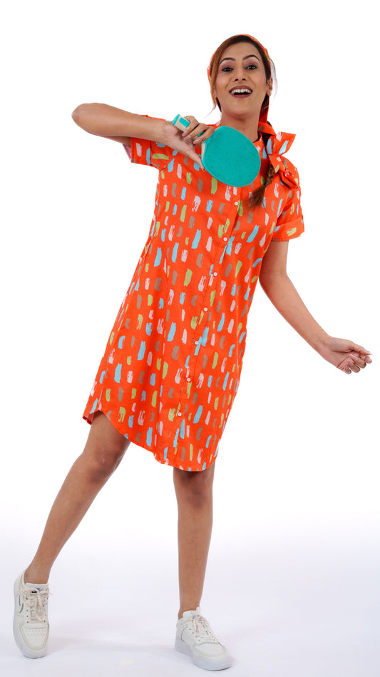 This trendy tunic dress features a modern Mandarin collar, short sleeves, and a flattering knee-length cut—perfect for any occasion. Designed with all-day comfort in mind, it’s made from breathable, easy-care fabric that moves with you. Whether you're heading to brunch, the office, or a casual evening out, this versatile piece is your go-to for effortless style and comfort.