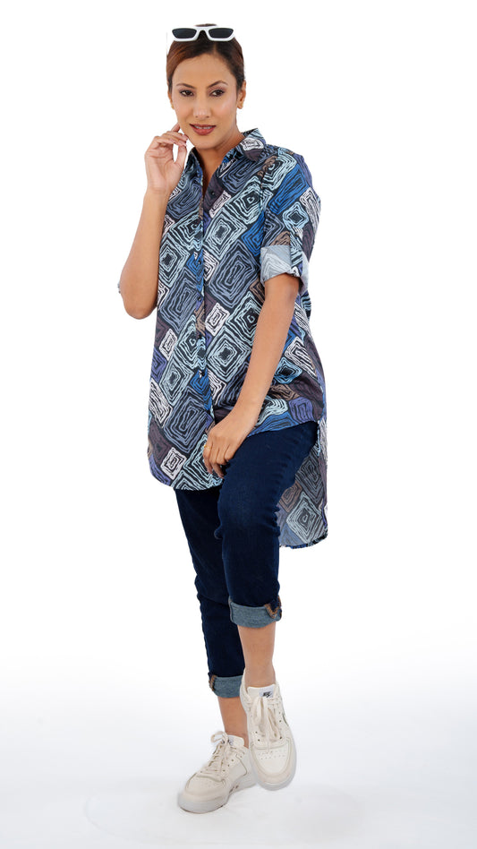 Spill The Blue A Chhori Low Front & High Back Shirt